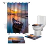 LHGBGBLNの4ピースシャワーカーテンセットは、サンセットビュービーチボートプリントのデザインが魅力。防水仕様で、バスルームにおしゃれな雰囲気をプラスします。カーペットや便座クッションも含まれています。