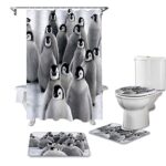 ペンギンシャワーカーテン4点セットは、可愛いペンギンデザインのシャワーカーテン、マット、フック、吸盤が含まれています。防水性、耐久性に優れ、バスルームを明るく楽しい雰囲気に演出します。
