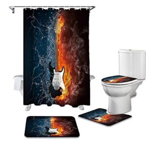 LHGBGBLNのシャワーカーテン4点セットは、音楽テーマのデザインで、バスルームをおしゃれに演出します。防水機能があり、シャワーカーテン、カーペット、便座クッション、フロアマットが含まれています。