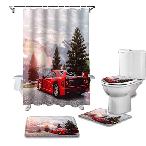 LHGBGBLNのシャワーカーテン4点セットは、赤いスポーツカーをモチーフにしたデザインで、バスルームをスタイリッシュに演出します。防水機能付きで耐久性もあり、便座クッションやフロアマットも含まれている実用的なセットです。