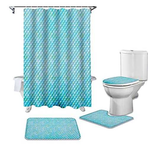 ブルーフィッシュシャワーカーテン4点セットは、耐水性の素材で作られ、美しい青色の魚のデザインが特徴です。附属品には、リングやフック、マットが含まれており、簡単に取り付け可能です。