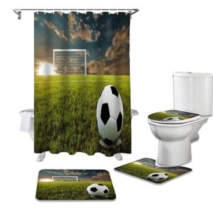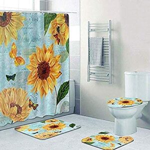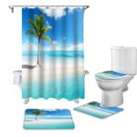 LHGBGBLN 4ピースシャワーカーテンセットは、ヤシの木のビーチ、青空、白雲のデザインが特徴。防水性で、バスルームカーペット、便座クッション、フロアマットも含まれています。