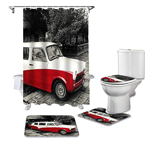 赤白レトロカーのシャワーカーテン4点セットです。おしゃれなデザインで、バスルームに個性的なアクセントを加えます。高品質な素材で耐水性があり、洗濯も簡単。サイズは標準適応、取り付けも簡単です。