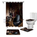 4ピースカウボーイシャワーカーテンセットは、個性的なデザインと高品質な素材で作られています。浴室を楽しく彩り、カーテン、マット、フック、シャワーバッグが含まれています。