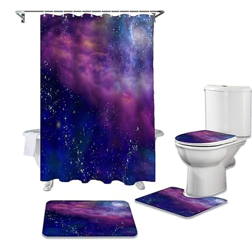 宇宙柄シャワーカーテン4点セットは、ユニークな宇宙デザインが特徴。防水加工が施されており、長持ち。セットにはカーテン、フック、マット、タオルが含まれ、バスルームをスタイリッシュに演出します。