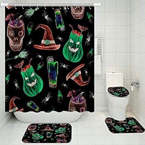 LHGBGBLN 緑の植物デザインの防水シャワーカーテン4ピースセット。白い石積みのデザイン、バスルームカーペット、便座クッション、フロアマット付きで、快適なバスタイムを演出します。
