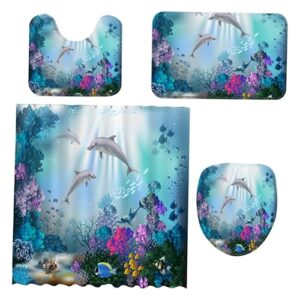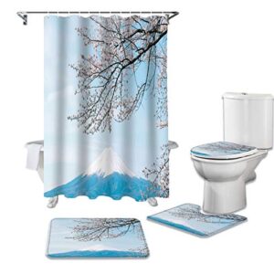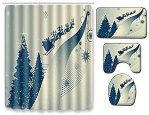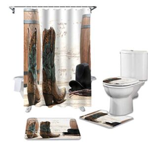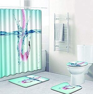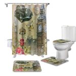 LHGBGBLNのシャワーカーテン4点セットは、レトロなポスターアートをテーマにしたデザイン。防水シャワーカーテン、バスルームカーペット、便座クッション、フロアマットが含まれています。