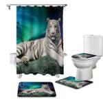 ホワイトタイガーシャワーカーテン4点セットは、ユニークなデザインと高品質な素材で作られています。防水性があり、取り扱いも簡単。バスルームをスタイリッシュに演出するアイテムです。
