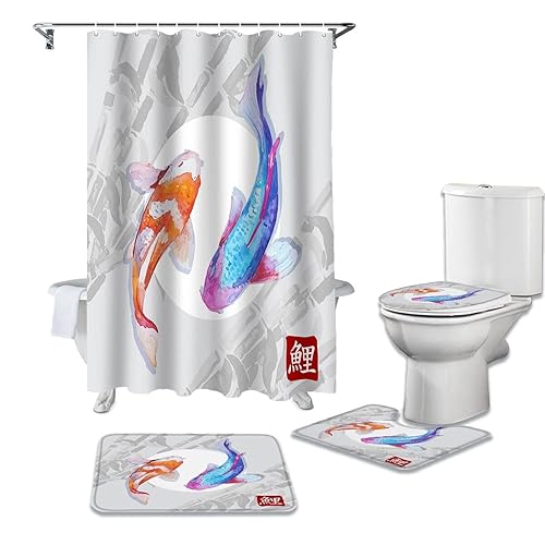 鯉デザインのシャワーカーテン4点セットは、高品質な素材で作られており、防水性に優れています。鮮やかな色合いでバスルームを華やかに演出し、取り付けも簡単。美しい鯉の柄が空間を引き立てます。