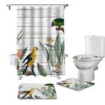 オウムと植物デザインのシャワーカーテンセットは、個性的なインテリアを演出します。防水性、耐久性のある素材使用で、洗濯機での洗浄も可能。バスルームを明るく彩るアイテムです。