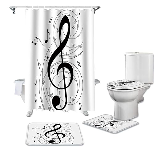 音楽シンボルのシャワーカーテン4点セットです。デザインは音楽の魅力を引き立て、バスルームを楽しい空間に変えます。耐水性素材で、容易に洗濯可能。サイズは標準的で、多様なインテリアにフィットします。