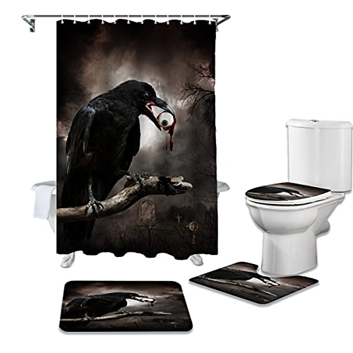 動物カラスシャワーカーテン4点セットは、カラフルなカラスのデザインが特徴のバスルーム用アイテムです。防水性があり、耐久性にも優れています。セットにはカーテン、リング、マット、トイレカバーが含まれています。