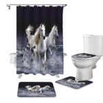 シャワーカーテン4点セット ホワイトは、清潔感あふれるデザインで、浴室を明るく演出します。耐水性素材でカビに強く、お手入れも簡単。カーテン、リング、フック、マットのセット。サイズは標準的で、取り付けも簡単です。