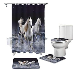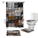 LHGBGBLNの4ピースシャワーカーテンは、レトロなカーライセンスプレートデザインで、完全防水。バスルームにカーペットと便座クッション、フロアマットを含むセット。