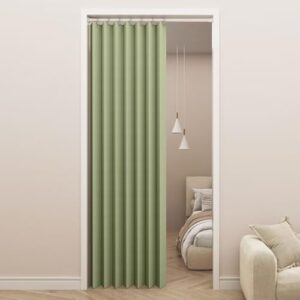 NEKOHASHI 間仕切りカーテン 断熱保温 一級遮光 のれん 遮光 暖簾 240cm丈 おしゃれ 北欧 アコーディオンカーテン 透けない 間仕切り ロング 節電対策 形状記憶 防音 目隠し 突っ張り棒カーテン 部屋の間仕切り 厚手 無地 カーテン ドア用 洗濯機対応 オーダー可 階段 玄関 グリーン 幅100cm*丈240cm