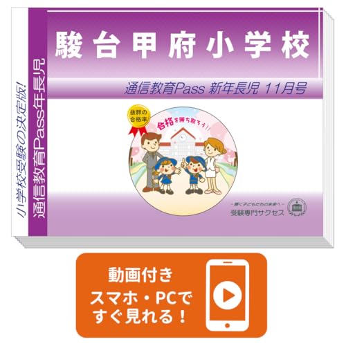 2026 駿台甲府小学校受験のための問題集。過去の入試傾向に基づいた対策が可能で、通信教育Passの問題集と受験専門サクセスのDVD-Rがセットになっています。受験対策の効率を高める教材です。