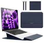 Hinnwerの15-16インチノートパソコンケースは、スタンド機能付きで、PU革製。撥水加工や磁石設計、防水電源ポーチとケーブルバンドも付属。Macbook、Dell、HP、Lenovoなどに対応。