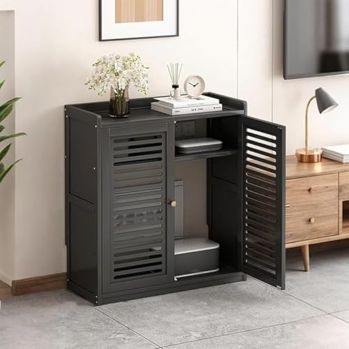 Lopres ルーター収納ボックス 木製 スリム コンパクト排熱 収納棚 扉付き おしゃれ 通気性 放熱性 キャビネット 配線隠し ボックス 多層構造 電話台 FAX台 弱電箱カバー Wi-Fi収納ラック パンチフリー設置 オフィス リビングルーム 玄関に最適 (59*25*67cm,ブラック) [並行輸入品]の高価買取