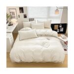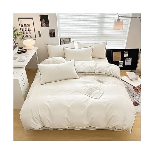 無地の布団カバーセット4点、綿100%で肌触り柔らかく通気性抜群。洋式・和式兼用、ジッパー付き。洗濯機可、春夏秋冬対応。サイズは200×230/220x240cm、色はホワイト、クイーンサイズ用。