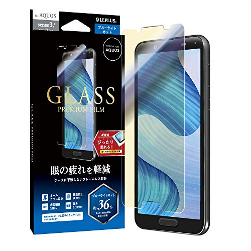 ルプラスのAQUOS sense3用ガラスフィルム「GLASS PREMIUM FILM」は、スタンダードサイズでブルーライトカット機能を搭載。SH-02M/SHV45/AQUOS sense3 liteに対応しています。
