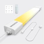 LED蛍光灯器具一体型、15W 1500LM、3000K-6500K調光可能。ワイヤレスリモコン付きで、ガレージ、キッチン、バスルーム、クローゼット、オフィスに最適。