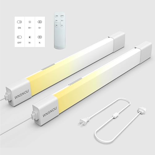 LED蛍光灯、器具一体型プラグ付きキャビネットライト。3000K-6500K調光、ワイヤレスリモコン付き。ガレージ、キッチン、バスルーム用、18W 1800LM