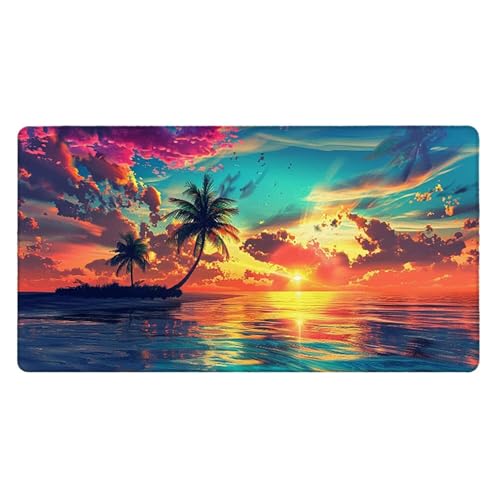 ゲーミングマウスパッド、大きいサイズ、 1000x500mm マウスパッド大型、のオフィスツールキーボードパッド、mouse pad 底部に滑り止め、防水洗える、オフィスやゲームでの使用に最適 デスクマットステッチエッジ快適操作性 日が海に出る T-693