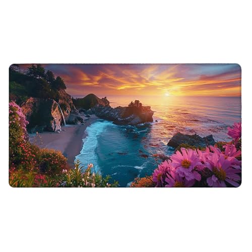 / ゲーミングマウスパッド、大きいサイズ、 1000x500mm マウスパッド大型、のオフィスツールキーボードパッド、mouse pad 底部に滑り止め、防水洗える、オフィスやゲームでの使用に最適 デスクマットステッチエッジ快適操作性 日没海 T-701
