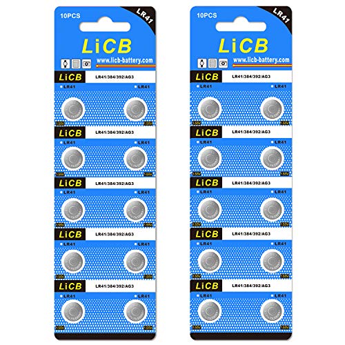 LiCB 20個 LR41 ボタン電池は1.5Vのアルカリ電池で、LR41、192、AG3、384、392、LR736に互換性があります。センサー機器やおもちゃに最適です。