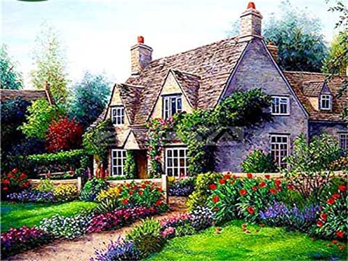 Weiniuniu刺繍クロスステッチキット、ガーデンハウスのデザイン、11CTの図案印刷。初心者から上級者向けのDIYキットで、サイズは40x50cm。手作りのホーム装飾に最適です。