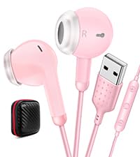 USB イヤホン 有線 PC パソコン用 イヤホン マイク付き ヘッドセットUSB 通話可能 音量調整可能 2.3M長 インナーイヤー型 テレワーク Web会議 ZOOM 在宅勤務 ゲーミング用 イヤフォン 対応デスクトップ/ノートパソコン/HP/Dell/Surface/Mac windowsなど 軽量 収納ケース付き ピンク