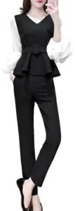 [エンプティオ] フェミニン セレモニースーツ レディース ビジネスカジュアル ブラウス セミフォーマル オフィス きれいめ フリル カジュアル フォーマル お洒落 入学式 モダン ママ 入園式 上下セット 清楚 かわいい ツーピース 卒業式 ストレートパンツ 韓国ファッション ズボン vネック ウエストゴム 大人 ゴシック 着痩せ 綺麗 ナチュラル スタイル エレガント (S) ブラック