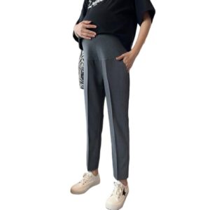 [Kasiciki] マタニティ ビジネスパンツ スーツ 通勤 オフィス 妊婦ロングパンツ ストレートパンツ 動きやすい 9分丈 産前産後兼用 ボトムス ウェスト調整 マタニティスラックス (JP, アルファベット, L, グレー)