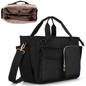 [Luxja] 教師バッグ オフィストートバッグ A4 8ポケット 6個のペンスロットあり ショルダーバッグ ビジネスバッグ 通勤 通学 会議 多機能 レディース メンズ ブラック