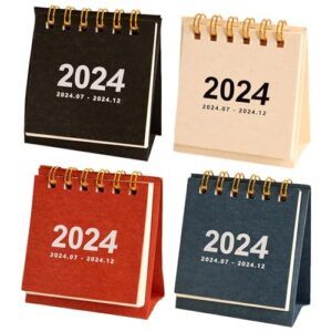 ミニ卓上カレンダー、スタンディングフリップデスクトップカレンダー、シンプルで折りたたみ式、2024年1月から2024年12月までのポータブル小型卓上カレンダー、計画整理用、家庭、ビジネス、オフィス、学校で使用されるデイリースケジューラー 4個 (7.5cm)