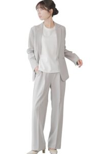 [festinalente] パンツスーツ レディース 洗える ワイドパンツ テーラードジャケット 1つボタン ストレッチ セットアップ ビジネス オフィス 通勤 ライトグレー M