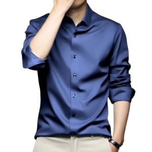 [Vailaipupy] ドレスシャツ メンズ 長袖 通気 軽量快適 アイスシルクシャツ 柔らかい 吸湿速乾 抗菌防臭 しわ防止 事務服 大きいサイズ 無地 通勤 ビジネス オフィス 日常着 春夏秋
