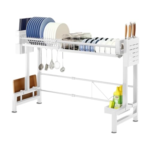 JPSunBloomの水切りラックは、シンク上に取り付けられ、伸縮可能でステンレス製。大容量でディッシュスタンド、包丁スタンド、まな板立てを備えた多機能収納。組み立ても簡単で、キッチンに最適なアイテムです。
