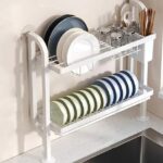 SHIHEERの水切りラックは、2段式でシンク上に縦置きでき、狭いカウンターにも適した省スペース設計です。大容量でキッチン用品の収納が可能。箸置き付きで、スリムサイズは北欧風のスタイルにもマッチします。