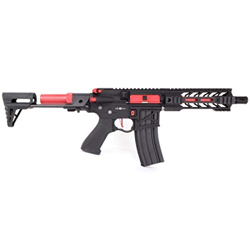 Lancer Tactical LT-34は、電動チャージ方式のエアソフトガンで、リアルな外観と操作性を持ち、合成樹脂製ボディが軽量性を確保。バッテリーはストック内に収納可能で、安定した射撃を提供。