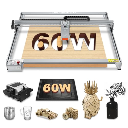 LASER TREE 60W 空気ポンプ、60W 出力電力レーザー切断機、800x600mm 彫刻領域、金属、木材の固定焦点スポット エア AssistFixed と 60 w レーザー彫刻機、レーザークラス1の製品情報