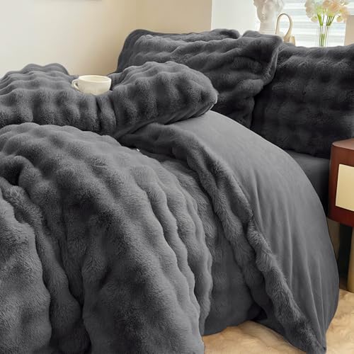 Valleinの布団カバー3点セットは、シングルサイズで冬用。ラビットファー調のマイクロファイバー素材を使用し、暖かさを+3℃アップ。掛け布団カバーと寝具カバーが含まれており、セミダブルやダブル向けのオプションもあります。
