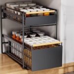 新登場のシンク下スライドラックは、組立不要で2段式。キッチンやバス、リビングで収納力抜群。8ローラーでスムーズに引き出せ、カーボンスチール製で防錆性あり。高さ調整可能で、ホワイト/ブラックの大サイズ(40*28*37cm)。