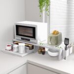 LUMIELのレンジ下収納スライドテーブル。幅調整可(約W48~93XD38XH17cm)、スチール製で耐久性抜群。引き出し式で作業スペースを有効活用。完成品だが取っ手のみの取り付けが必要。