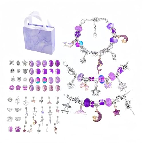 女の子向けビーズアクセサリーキット。ブレスレット、ネックレス、ペンダントが自分で作れる。ABS樹脂と亜鉛合金製、収納ケース付き。ブレスレットサイズ10〜20cm。誕生日やクリスマスプレゼントに最適(パープル)。