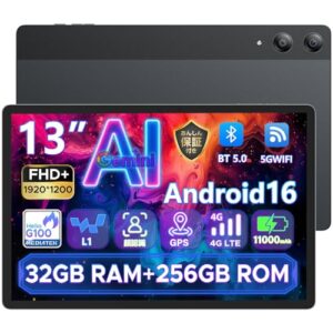 【 Android 16 タブレット 13インチ 】DOOGEE Tab E3 Pro アンドロイド16 G100 タブレット FHD+ 90Hz 32GB RAM+256GB ROM+2TB TF 拡張 11000mAh 1920×1200解像度 4g lte SIMフリー 顔認証 クアッドスピーカー 薄型 高性能 大画面 Android Tablet AI カメラ GPS搭载