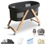 ベビーベッド 添い寝ゆりかごは、シームレスなデザインで天然木製。折りたたみやすく、4in1の多機能。揺りかごに変身可能で、蚊帳や収納バスケット、キャスタ付き。メッシュ素材で通気性良く、軽量で洗濯可能。出産祝いに最適。
