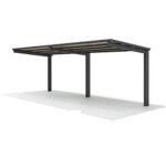 四国化成のサイクルポートVF-Rオープンタイプは、連棟ユニットで積雪50cmに対応。屋根材はアルミ押出形材で、カラーはブロンズ/ステンカラーです。