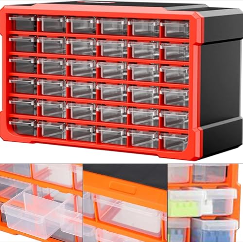 大容量のパーツキャビネットは、プラスチック製の引き出し式コンテナで、ビーズやボルトの整理に最適です。壁掛け可能でオフィスや作業場に便利な収納が実現します。