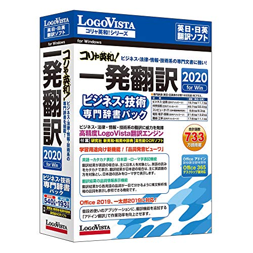 コリャ英和! 一発翻訳 2020 for Winは、ビジネス・技術向けの専門辞書が充実した翻訳ソフトです。オフラインで使用可能なOCR機能も搭載し、英日・日英間の翻訳もスムーズに行えます。